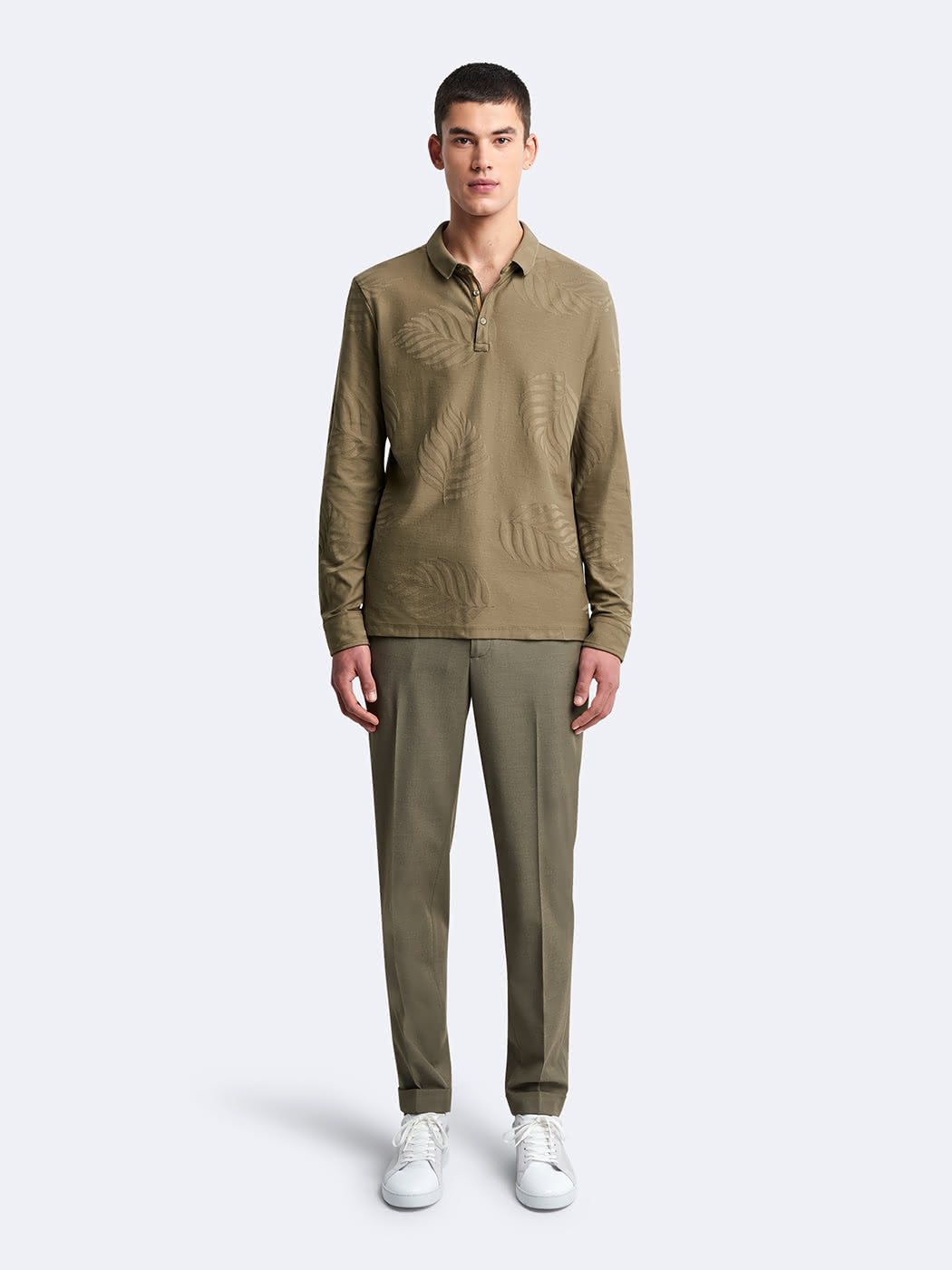 Sa coupe slim offre une silhouette moderne et ajustée, soulignant votre style avec finesse. Grâce à son tissage jacquard, ce polo présente un subtil motif en relief, ajoutant une touche sophistiquée à votre tenue. Confectionné principalement en coton, il allie confort et respirabilité pour une sensation agréable tout au long de la journée.